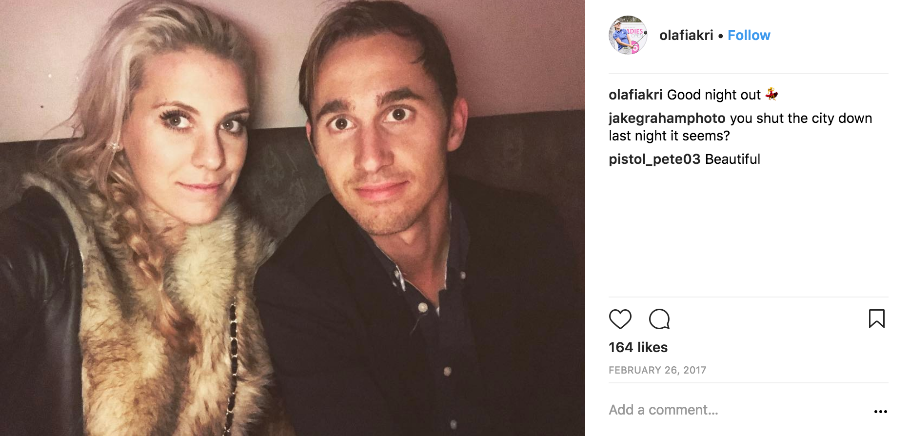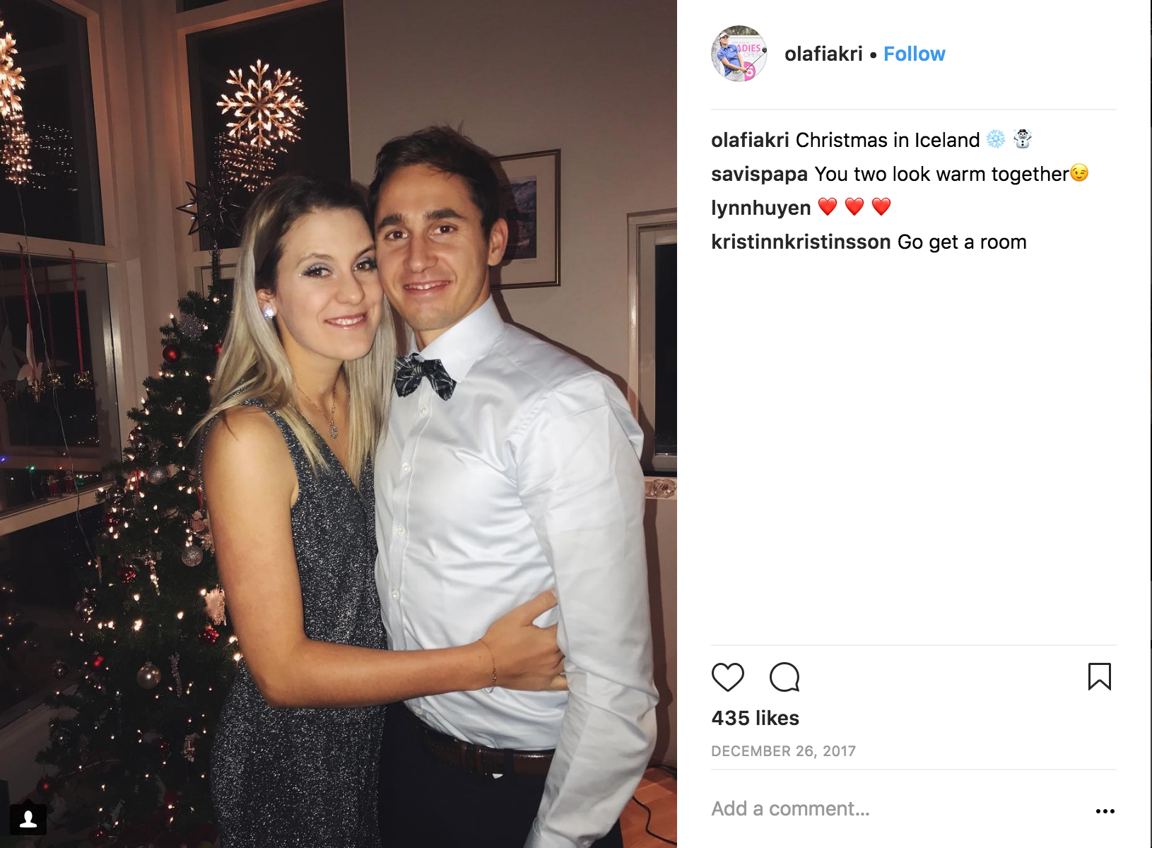 They actually got engaged on Christmas Eve in 2015. Kristinsdottir had just completed qualifying for the Ladies European Tour and flew to Germany to be with Bojanowski’s family. Her family was also there from Iceland, so the two families were preparing to have a nice Christmas dinner together before opening gifts.